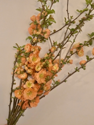 Coral colored florets on woody stems with small deep green leaves. Splice the stems for better water absorption. Certified Organic.
