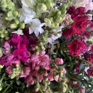 Sweet, short, fine stemmed autumn Snapdragons. Still as freshly scented as their larger version was earlier in the flower season. Certified organic.